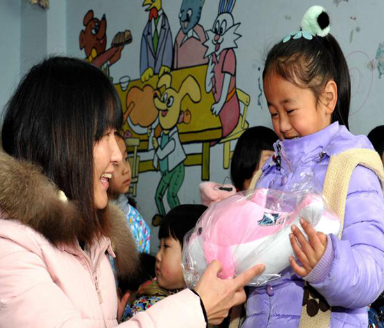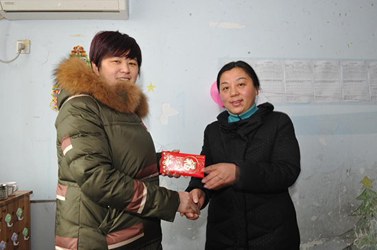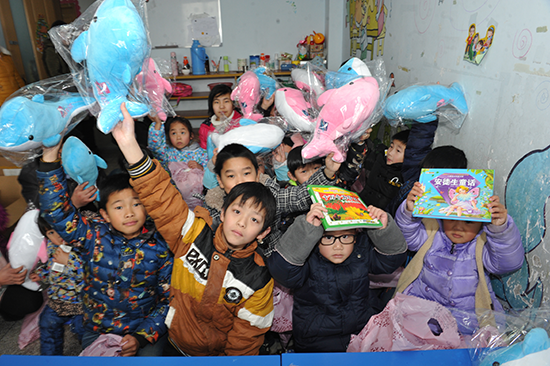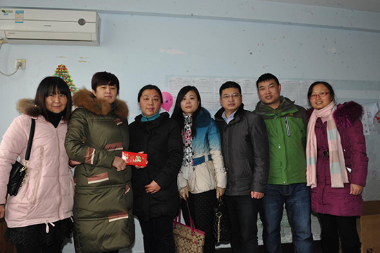 當天上午十點,天上飄著雪花,深藍醫療陳奉玲董事長帶領公司中層管理者來到活動現場。雖然天空下著雪,氣溫很低,但深藍人用他們滿滿的愛為智障兒童送去了一縷陽光。我們帶去了公司的吉祥物——海豚娃娃,贈送了圖書、文具等學習用品并捐贈了現金。本次公益活動以探望和捐贈為主,側重于走進智障兒童的生活和了解他們內心。