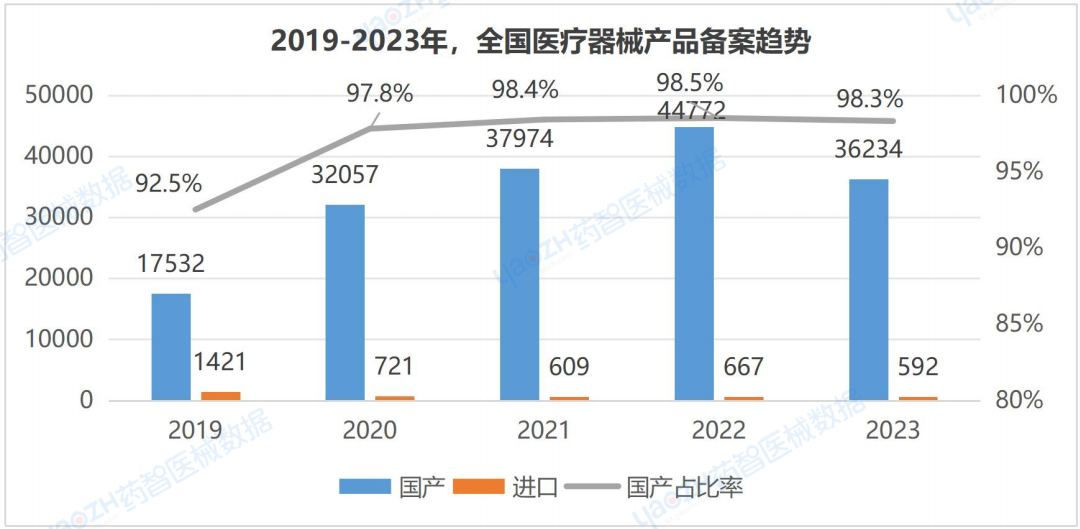 2023年,全國醫療器械備案產品國產占比率達到98.3%。