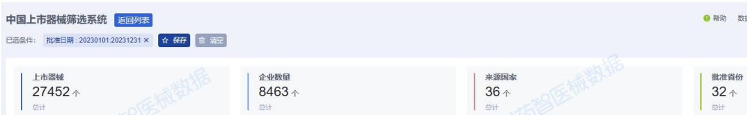 據藥智醫械數據-中國上市器械篩選系統統計分析,2023年,NMPA共批準注冊了27452項醫療器械。這些批準涉及8463家注冊人企業,覆蓋了全國32個省份,并涉及來自36個不同國家的醫療器械。