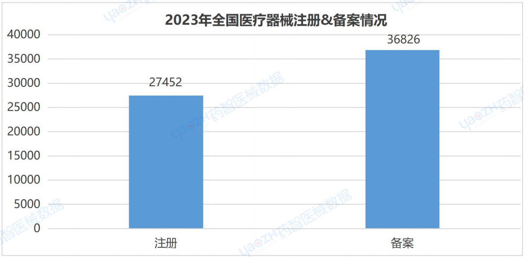 截至2024年2月,2023年全國共注冊醫療器械產品27452項,審批備案醫療器械產品數量36826項。