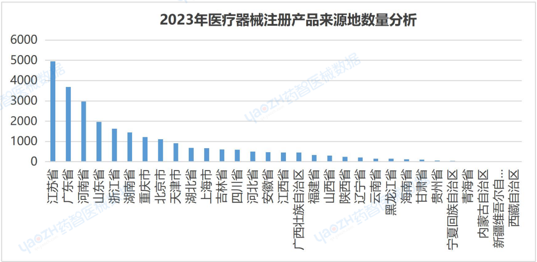 2.2 2023年國產醫療器械注冊產品來源地數量分析