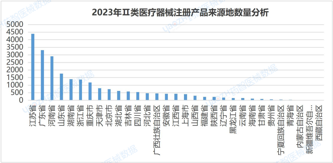 2.3 2023年全國Ⅱ類醫療器械注冊產品來源地數量分析
