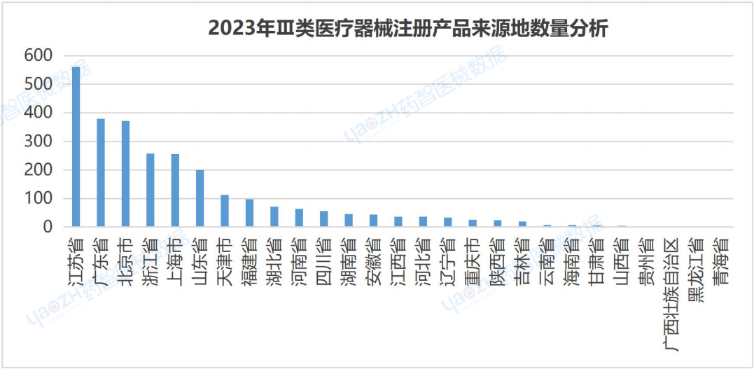 2.4 2023年全國Ⅲ類醫療器械注冊產品來源地數量分析