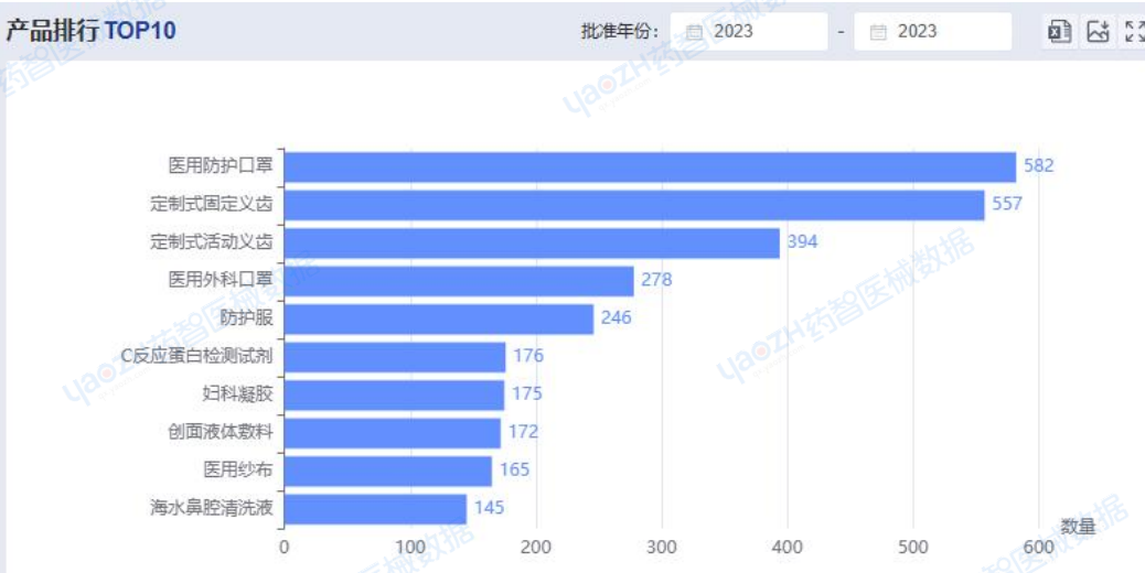 從產品品類來看,截至目前,2023年全國注冊醫療器械產品中醫用防護口罩注冊數量排名第一,有582項。