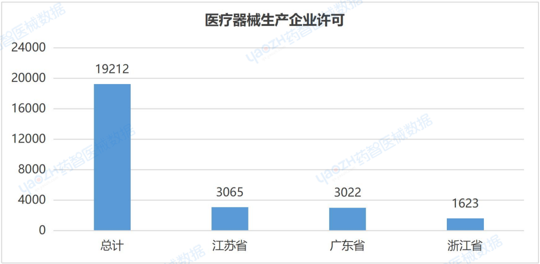 在境內從事第二類、第三類醫療器械生產企業,應當向所在地省、自治區、直轄市藥品監督管理部門申請生產許可。截至2023年,注冊醫療器械生產許可企業數量排名前三的省份依次是江蘇省、廣東省、浙江省。