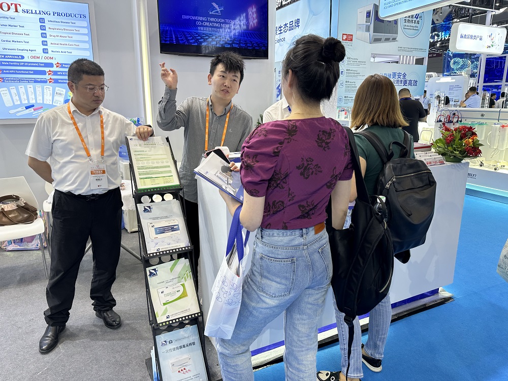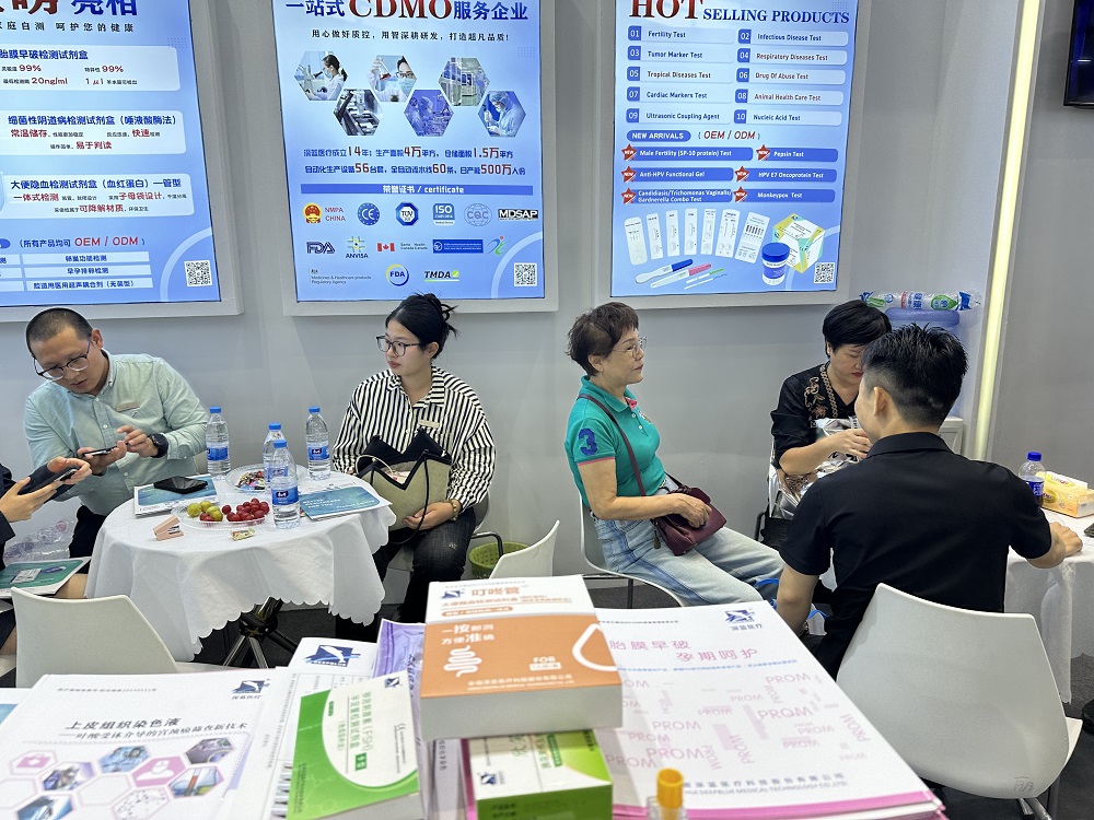 在體外診斷展區(qū),深藍醫(yī)療攜胎膜早破檢測試劑盒、細菌性陰道病檢測試劑盒(唾液酸酶法)、管型大便隱血檢測試劑盒(血紅蛋白)等產(chǎn)品震撼亮相,憑借先進可靠的技術(shù)性能、多樣化的品類展示,成為業(yè)界關(guān)注的焦點。