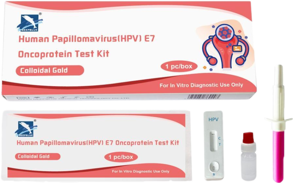 HPV感染后的細(xì)胞中利用人體細(xì)胞機(jī)制表達(dá)產(chǎn)生E7蛋白,它可以通過結(jié)合并降解視網(wǎng)膜母細(xì)胞瘤蛋白(pRb),使感染的細(xì)胞無限的增殖并惡性轉(zhuǎn)變。隨著宮頸癌的發(fā)展,E7蛋白持續(xù)活躍并不斷侵蝕正常細(xì)胞,E7蛋白的表達(dá)量呈現(xiàn)由少到多的變化;與此同時(shí)HPV DNA的表達(dá)量病變的發(fā)展而減弱。該檢測試劑盒用于定性檢測女性宮頸脫落細(xì)胞中的E7蛋白,用于女性宮頸疾病的輔助診斷,可以用于使用者自行居家檢測。