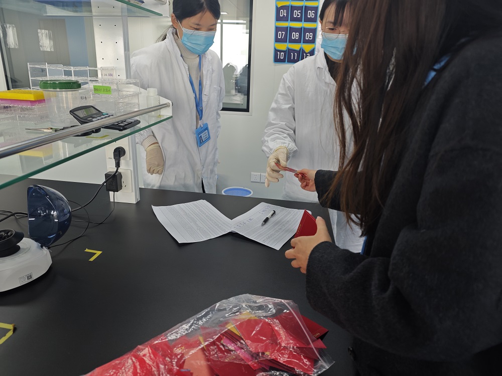 2月5日一早,行政人員早早做好了準(zhǔn)備,擔(dān)任“喜氣派發(fā)員”,穿梭在各個(gè)辦公區(qū)域和車間。送上新年問候之余,承載著祝福與期待的紅包飛入了每一位員工手中。每個(gè)紅包都經(jīng)過細(xì)心挑選與封裝,封入實(shí)實(shí)在在的心意的同時(shí),更飽含著深藍(lán)醫(yī)療對(duì)員工在新的一年里工作順利、生活美滿的真摯祝愿。