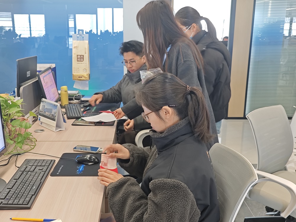 派發(fā)過程中,行政人員與員工親切交流,一句句貼心的話語,如同一股暖流,流淌在每一位員工心間,驅(qū)散了冬末春初的寒意,讓大家真切感受到深藍(lán)大家庭的關(guān)懷與重視。