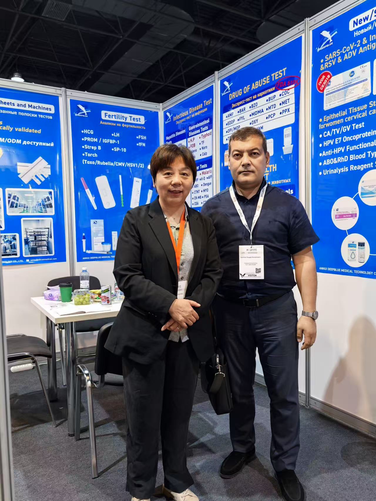 安徽深藍醫療科技股份有限公司作為中國領先的體外診斷試劑和醫療器械制造商,循著絲綢之路,首次亮相 KIHE 2025。公司展位吸引了眾多參觀者的關注,系列具有自主知識產權的創新產品以其精準度高、操作簡便、成本效益顯著等特點,受到了來自哈薩克斯坦及周邊國家醫療機構和經銷商的廣泛好評。深藍醫療總經理陳奉玲女士在展會現場表示:“哈薩克斯坦及中亞地區醫療市場潛力巨大,對高品質醫療產品和技術的需求日益增長。深藍醫療將以此次參展為契機,加強與當地合作伙伴的溝通與協作,為提升中亞地區的醫療服務水平貢獻力量。”