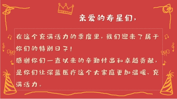 深藍(lán)醫(yī)療始終秉持“以人為本” 的發(fā)展理念,致力于打造一個(gè)充滿尊重、關(guān)愛與歸屬感的工作環(huán)境,將員工關(guān)懷融入到日常工作的點(diǎn)滴之中,關(guān)注每一位員工的成長與幸福。從節(jié)日福利到生日驚喜,從職業(yè)發(fā)展規(guī)劃到身心健康關(guān)懷,每一次貼心的關(guān)懷,每一次真誠的祝福,都在不斷凝聚著深藍(lán)人的心,讓大家感受到家一般的溫暖和支持。